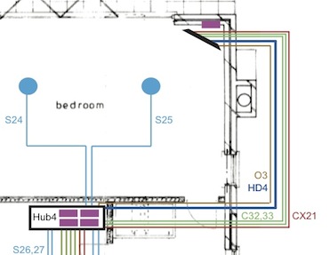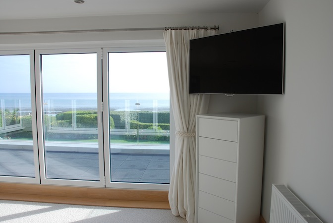 Another swing-out bracket is used for the TV in the bedroom, which again has a "floating" quality, but which also, and very importantly, keeps it clear of the stunning views.
